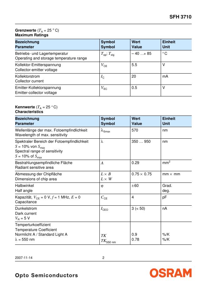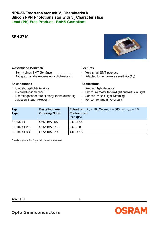 OSRAM SYLVANIA SFH 3710 NPN-Si-Fototransistor mit Vλ Charakteristik Silicon NPN Phototransistor with Vλ Characteristics Lead (Pb) Free Product - RoHS Compliant 数据手册.pdf
