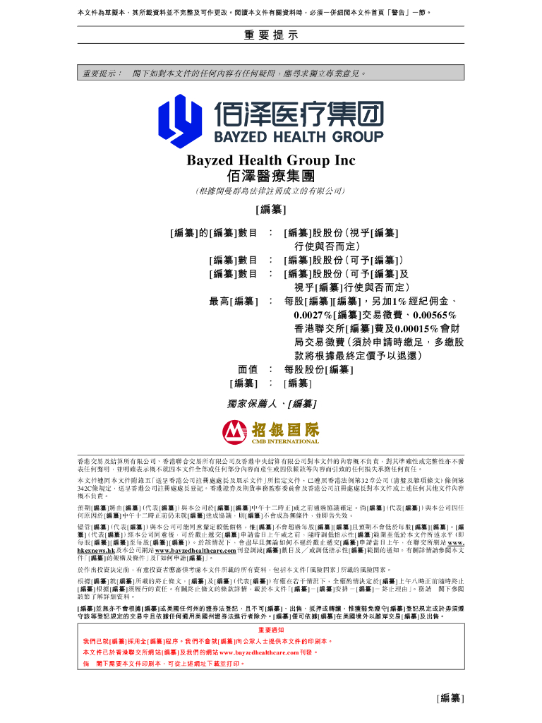 Bayzed Health Group Inc佰泽医疗集团有限公司港交所IPO上市招股说明书.pdf