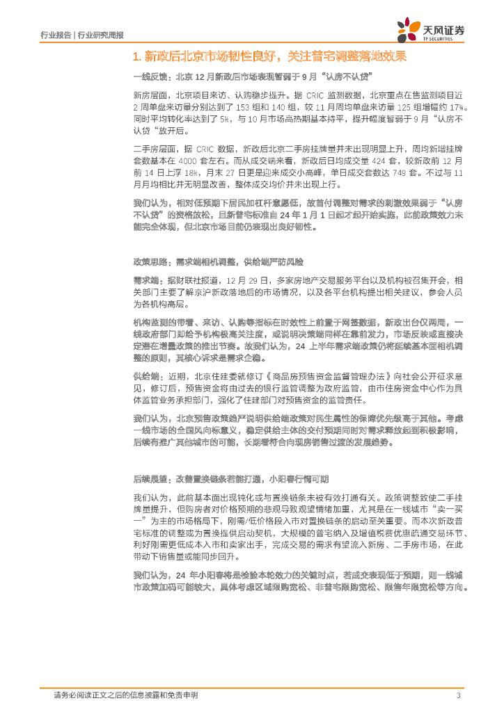 天风证券:房地产行业研究周报:新政后北京市场韧性良好,关注普宅调整落地效果.pdf
