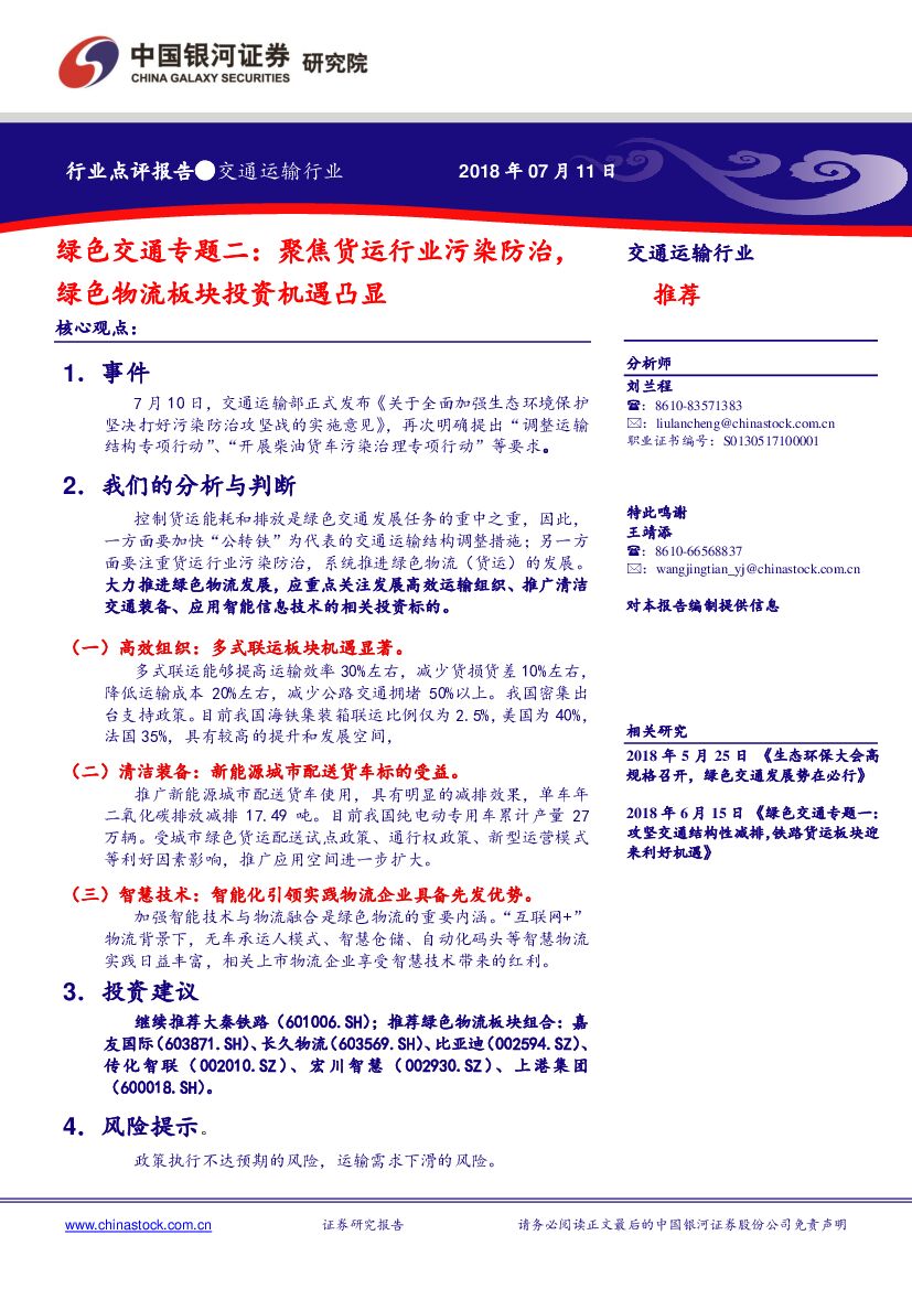 中国银河:绿色交通专题二:聚焦货运行业污染防治,绿色物流板块投资机遇凸显.pdf