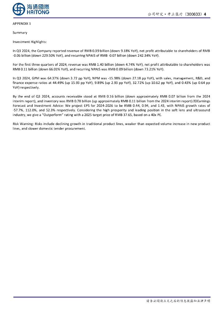海通国际:开立医疗(300633)-公司季报点评:24年压力较大,应收账款环比中报有所下降.pdf