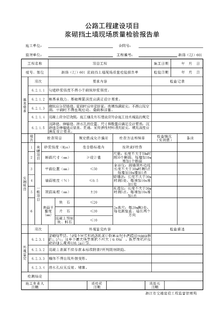 浙江省公路砌体挡土墙工程施工统一用表.pdf