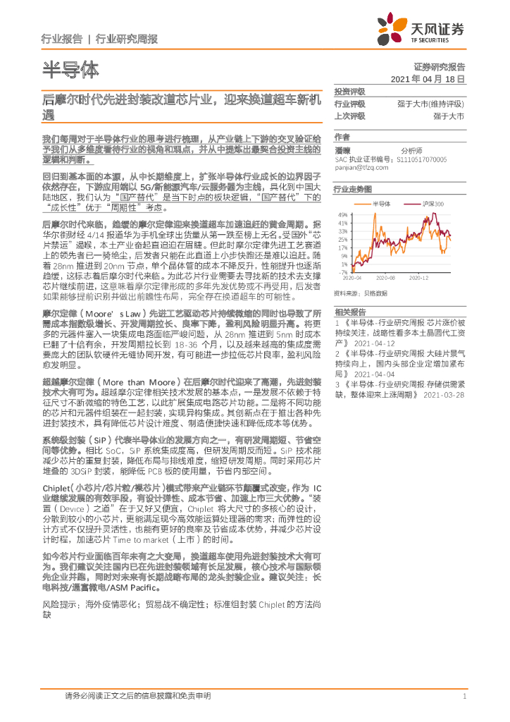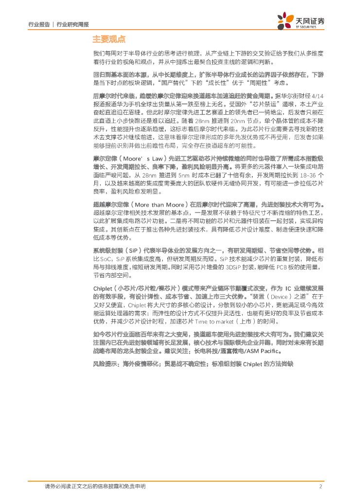 天风证券:半导体行业研究周报:后摩尔时代先进封装改道芯片业,迎来换道超车新机遇.pdf