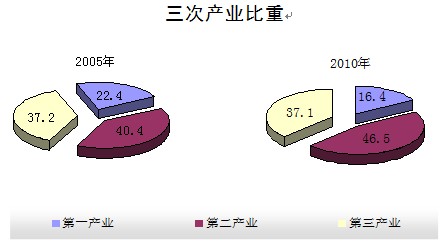 产业结构进一步调整优化,三次产业结构由2009年的17.3:44.5:38.2调整为16.4:46.5:37.1。
