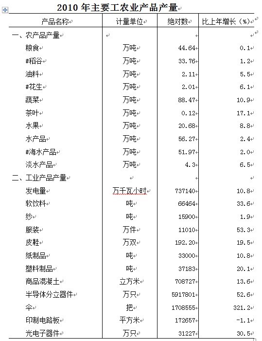 汕尾市2010年国民经济和社会发展统计公报