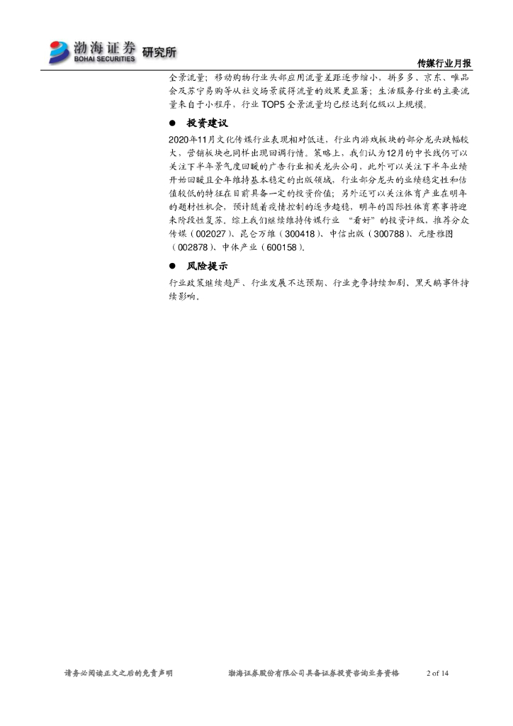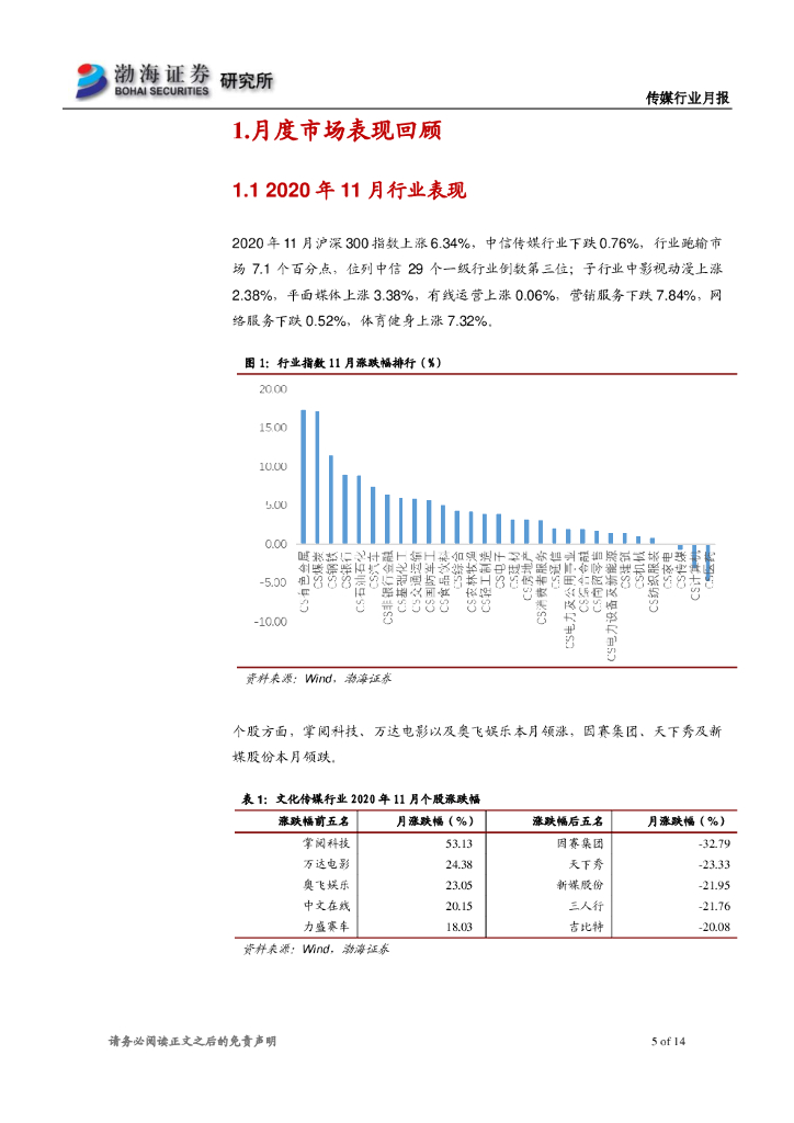 渤海证券:传媒行业月报:11月行业表现低迷,关注三大主线.pdf