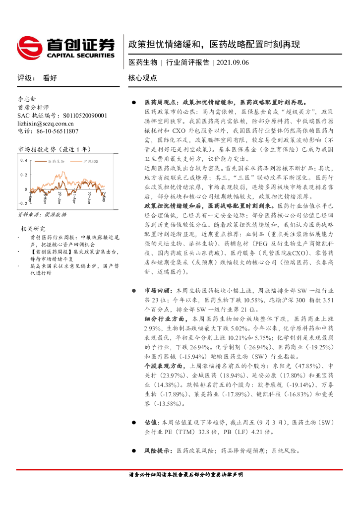 首创证券:医药生物行业简评报告:政策担忧情绪缓和,医药战略配置时刻再现.pdf