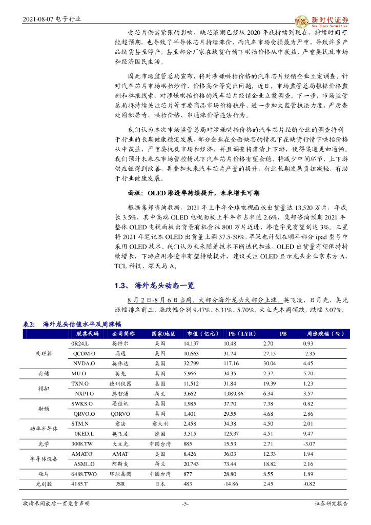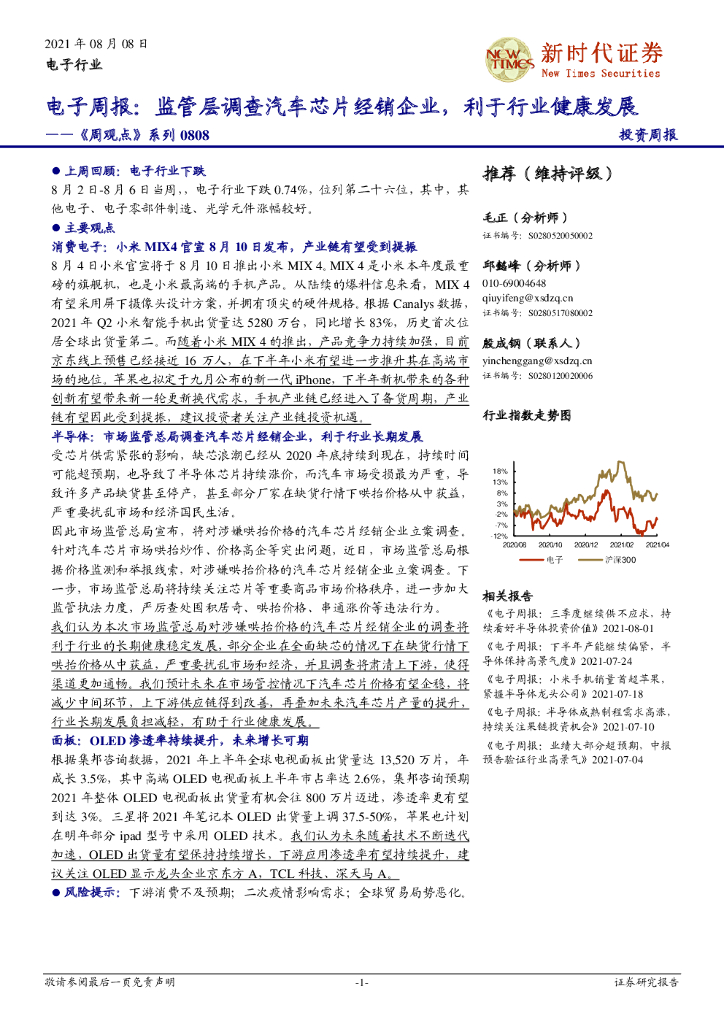 新时代证券:电子周报《周观点》系列:监管层调查汽车芯片经销企业,利于行业健康发展.pdf