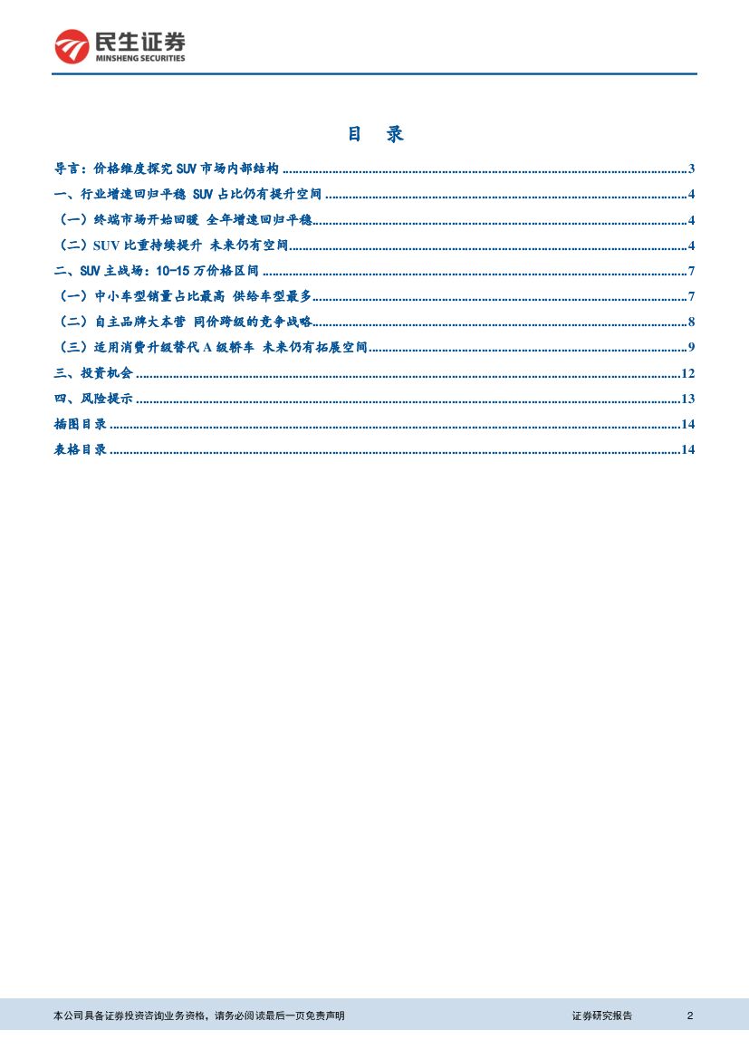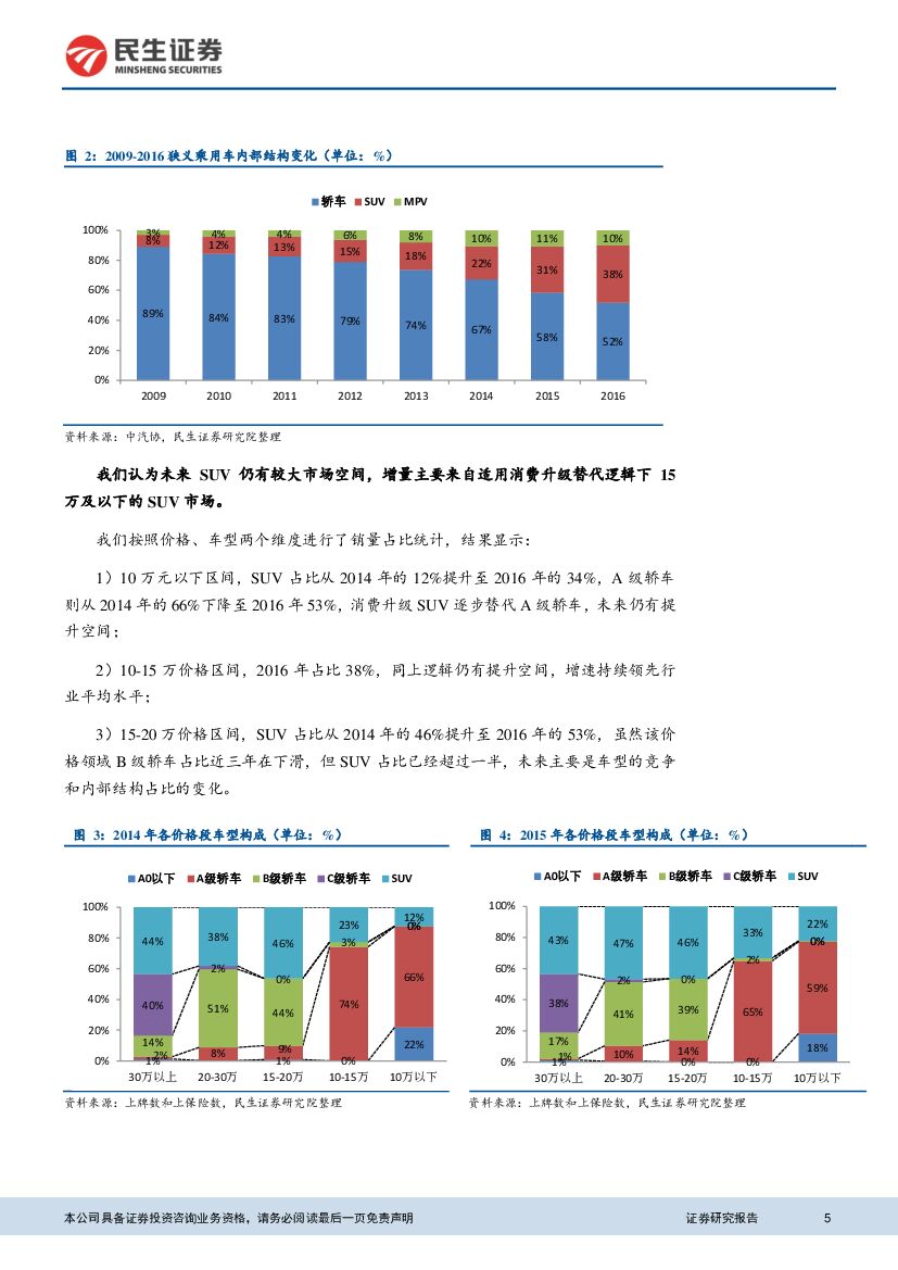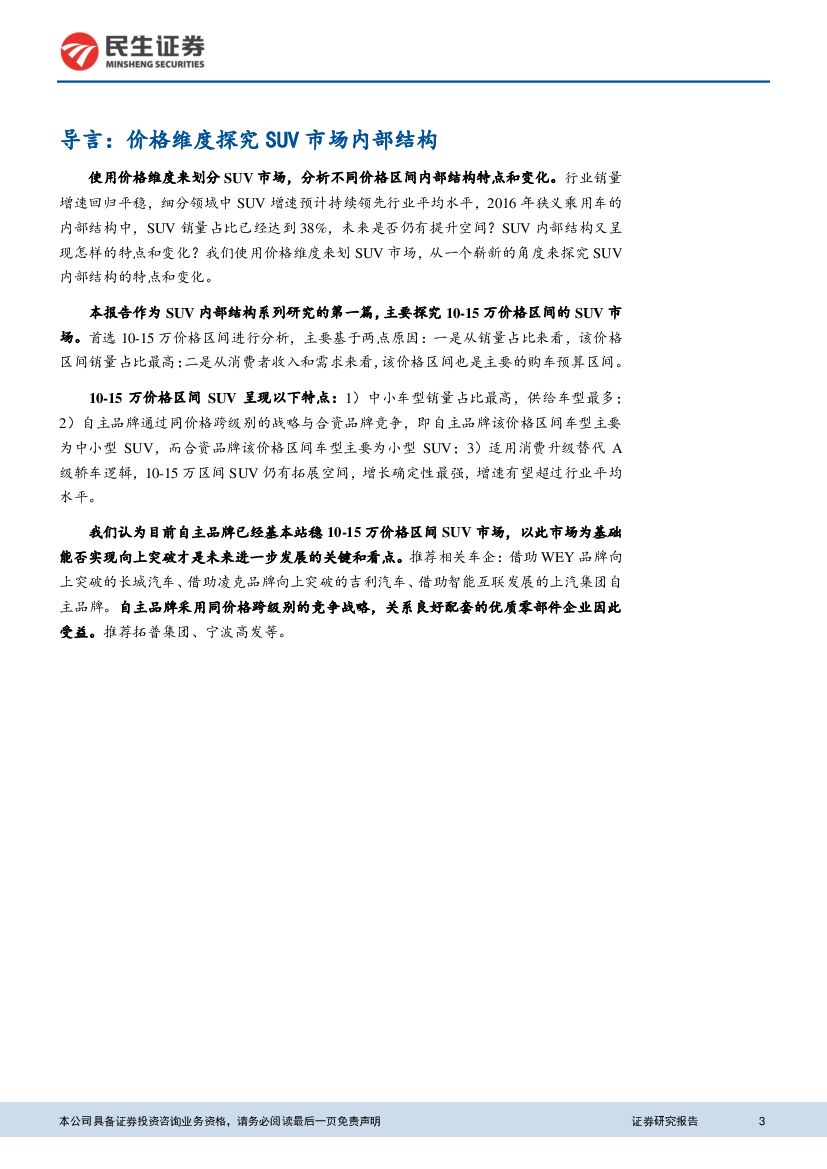 民生证券:汽车及配件行业深度报告:SUV内部结构探究专题报告一:10-15万价格区间-自主品牌的大本营 同价格跨级别的竞争战略.pdf