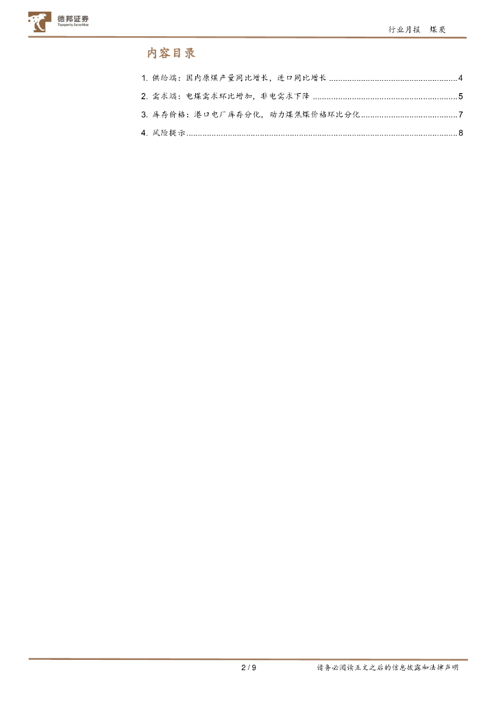 德邦证券:煤炭行业月报:供给增速放缓,需求预期改善.pdf