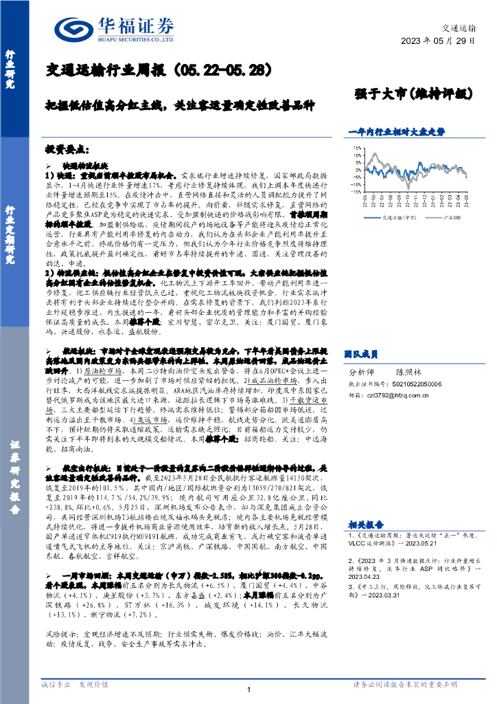 华福证券:交通运输行业周报:把握低估值高分红主线,关注客运量确定性改善品种.pdf