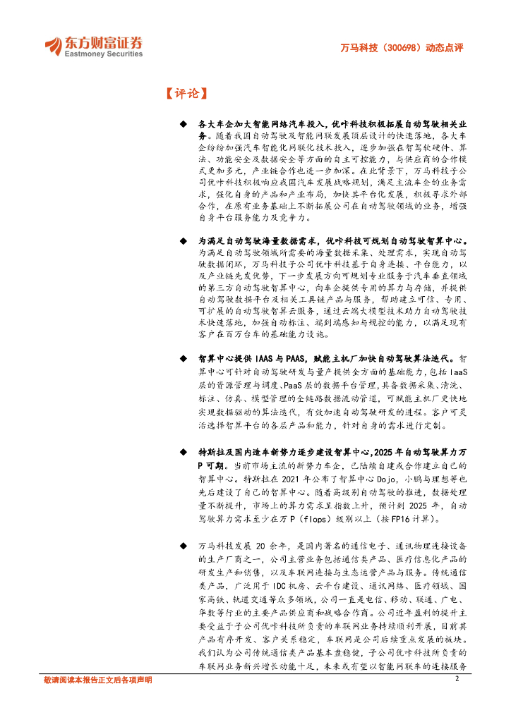东方财富证券:万马科技(300698)-动态点评:子公司优咔科技签署合作框架协议,探索助力主机厂提升自动驾驶研发效率.pdf