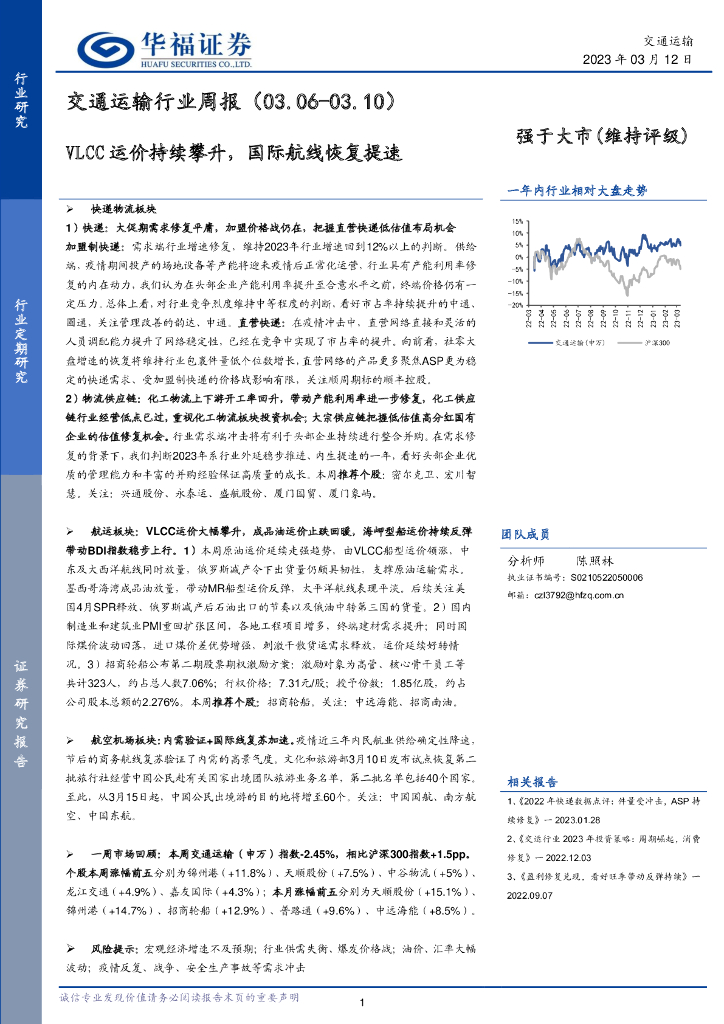 华福证券:交通运输行业周报:VLCC运价持续攀升,国际航线恢复提速.pdf