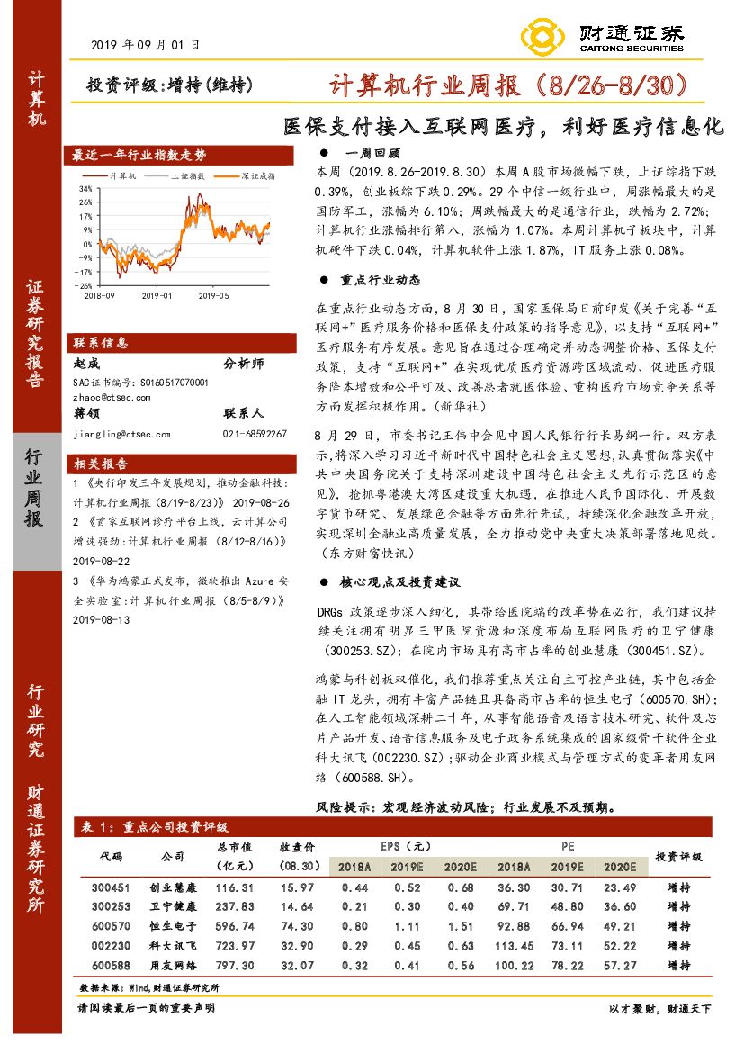 财通证券:计算机行业周报:医保支付接入互联网医疗,利好医疗信息化.pdf