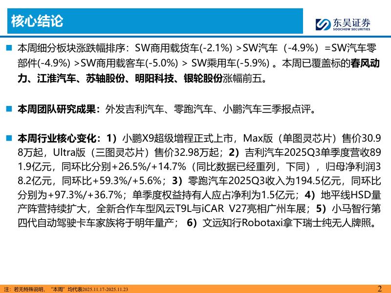 东吴证券:汽车周观点:小鹏增程首款车型X9发布,继续看好汽车板块.pdf