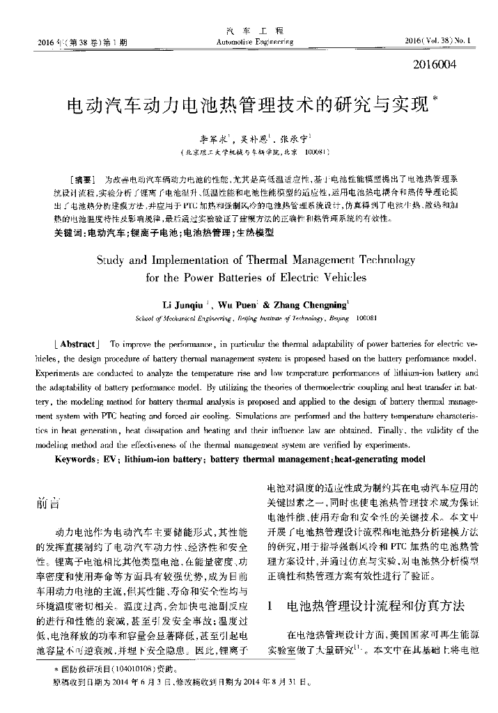 北京理工大学:电动汽车动力电池热管理技术的研究与实现.ppt