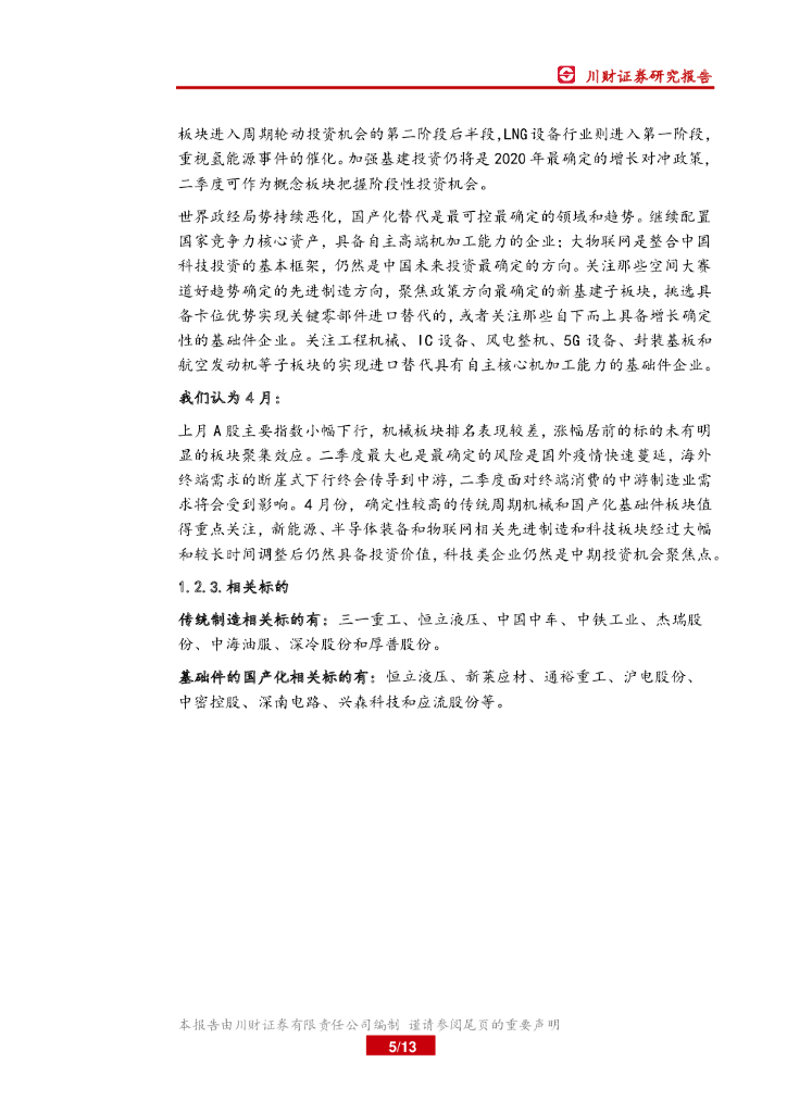 川财证券:机械设备行业4月月报:聚焦确定性,关注传统周期机械和国产替代基础件.pdf