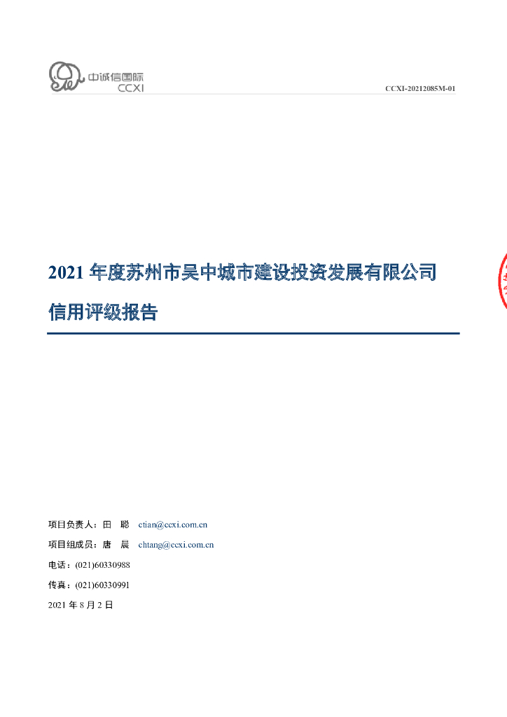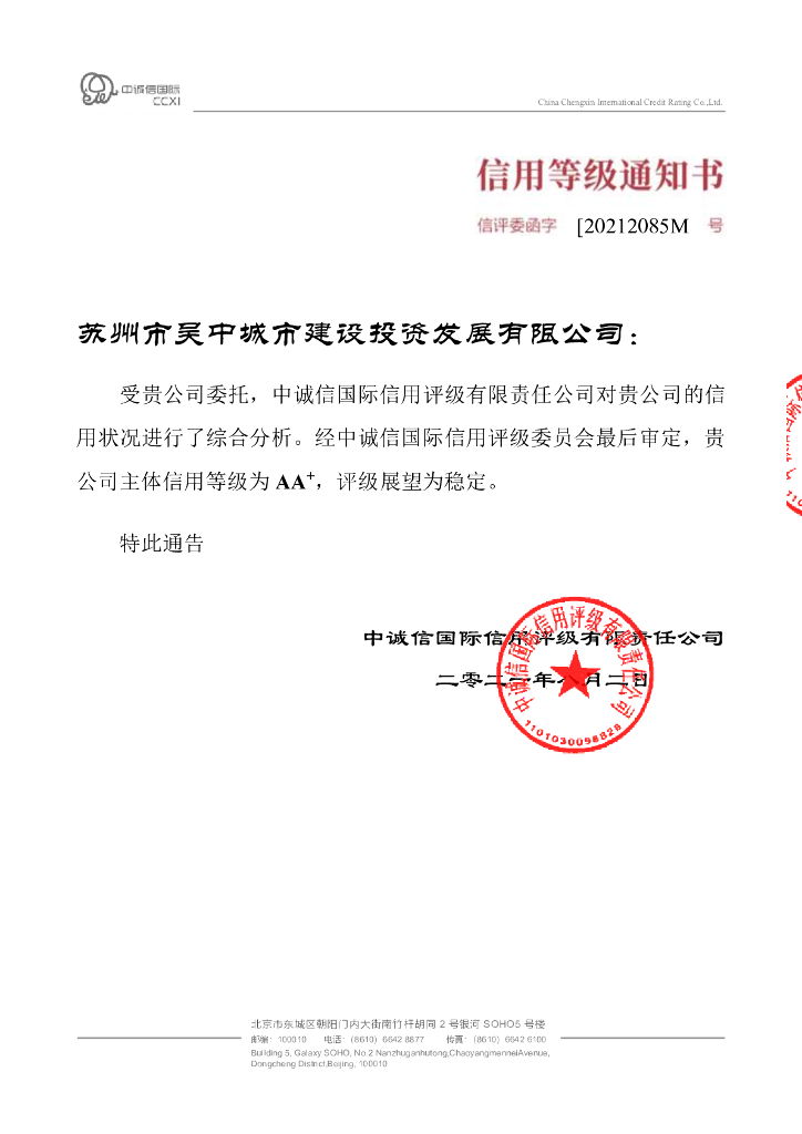 中诚信:苏州市吴中城市建设投资发展有限公司主体评级报告.pdf