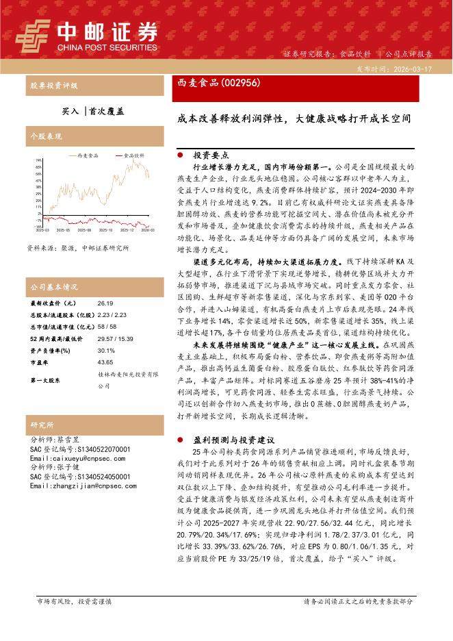中邮证券:西麦食品(002956)-成本改善释放利润弹性,大健康战略打开成长空间.pdf