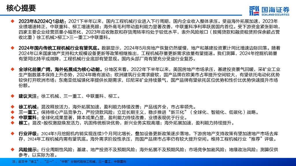 国海证券:工程机械行业2023年报&2024年一季报总结:内需筑底+出海机遇,业绩拐点可期.pdf
