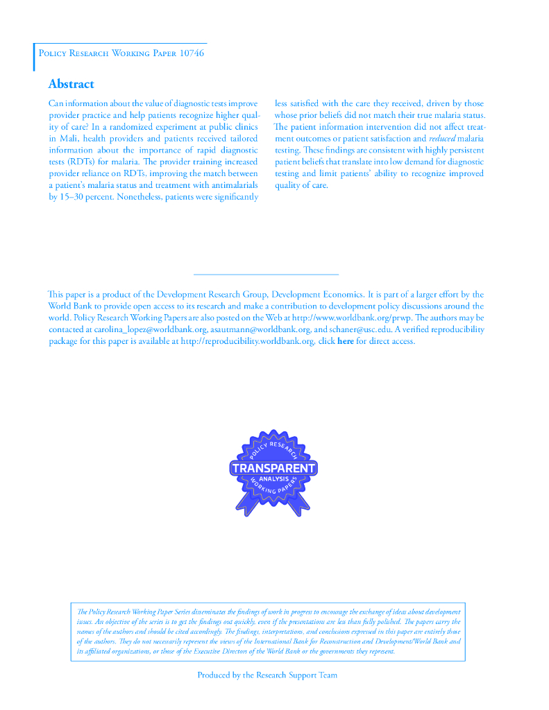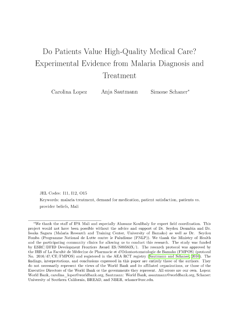 世界银行:患者重视高质量的医疗保健吗?疟疾诊断和治疗的实验证据(英文版).pdf