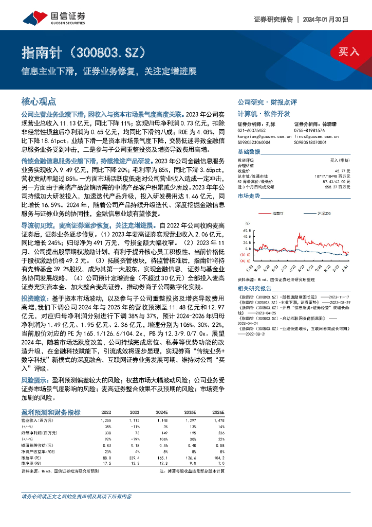 国信证券:指南针(300803)-信息主业下滑,证券业务修复,关注定增进展.pdf