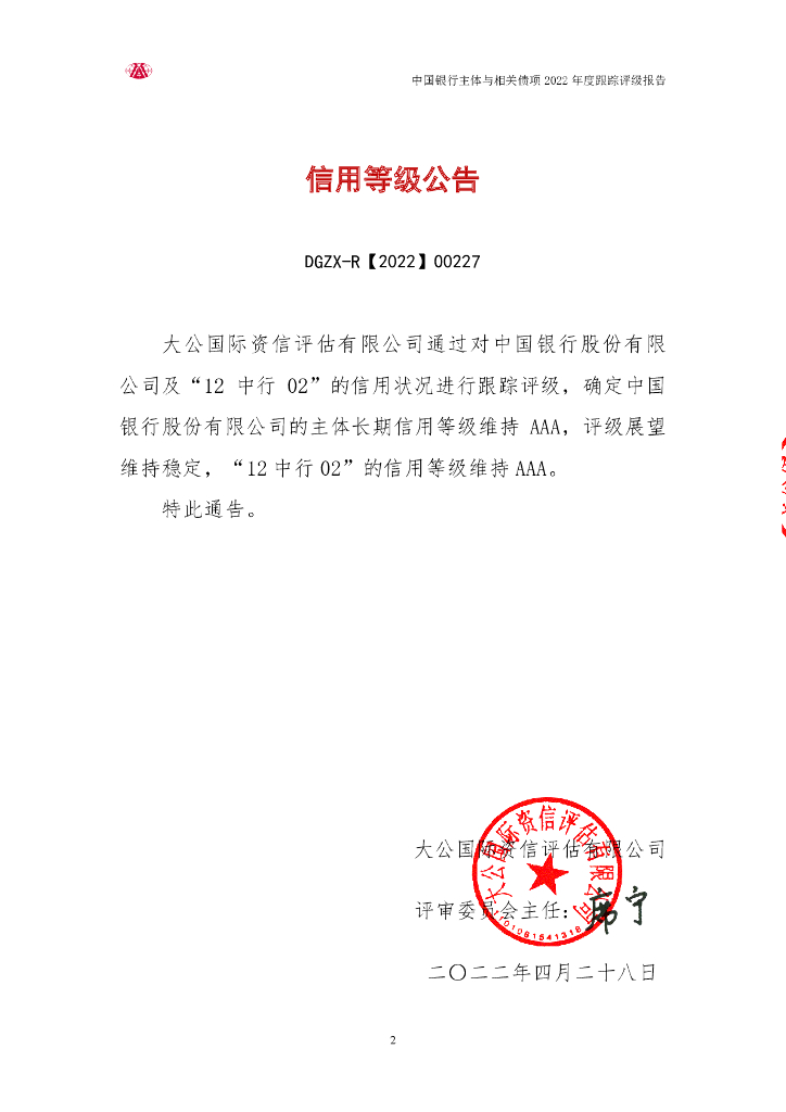 大公:中国银行股份有限公司主体与相关债项2022年度跟踪评级报告.pdf