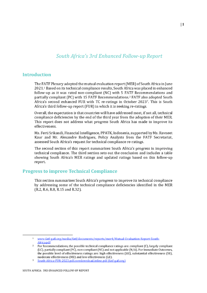 FATF:2024年南非在加强打击洗钱和恐怖主义融资措施方面取得的进展报告(英文版).pdf