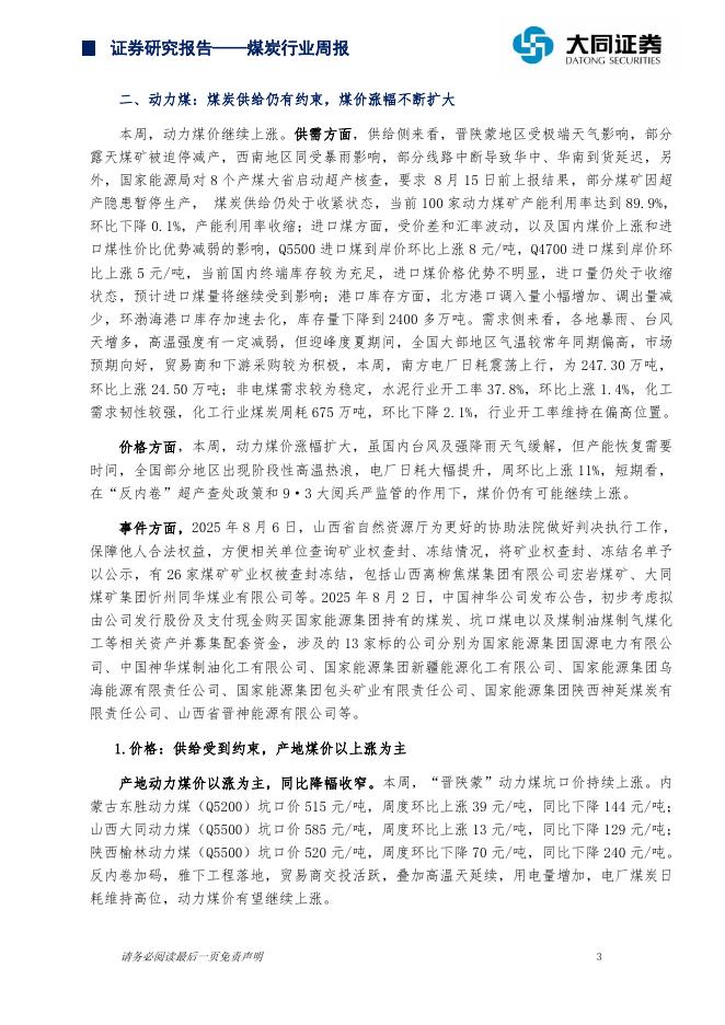 大同证券:煤炭行业周报:煤价涨幅扩大,上冲700有可期.pdf