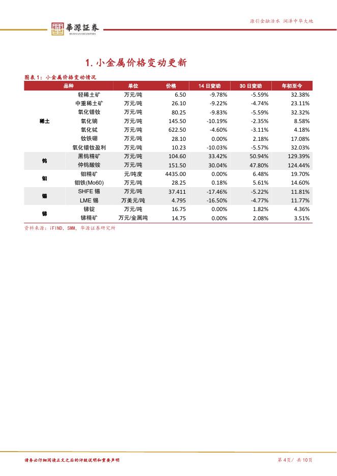 华源证券:小金属双周报:钨价持续创历史新高,稀土价格近期小幅调整.pdf