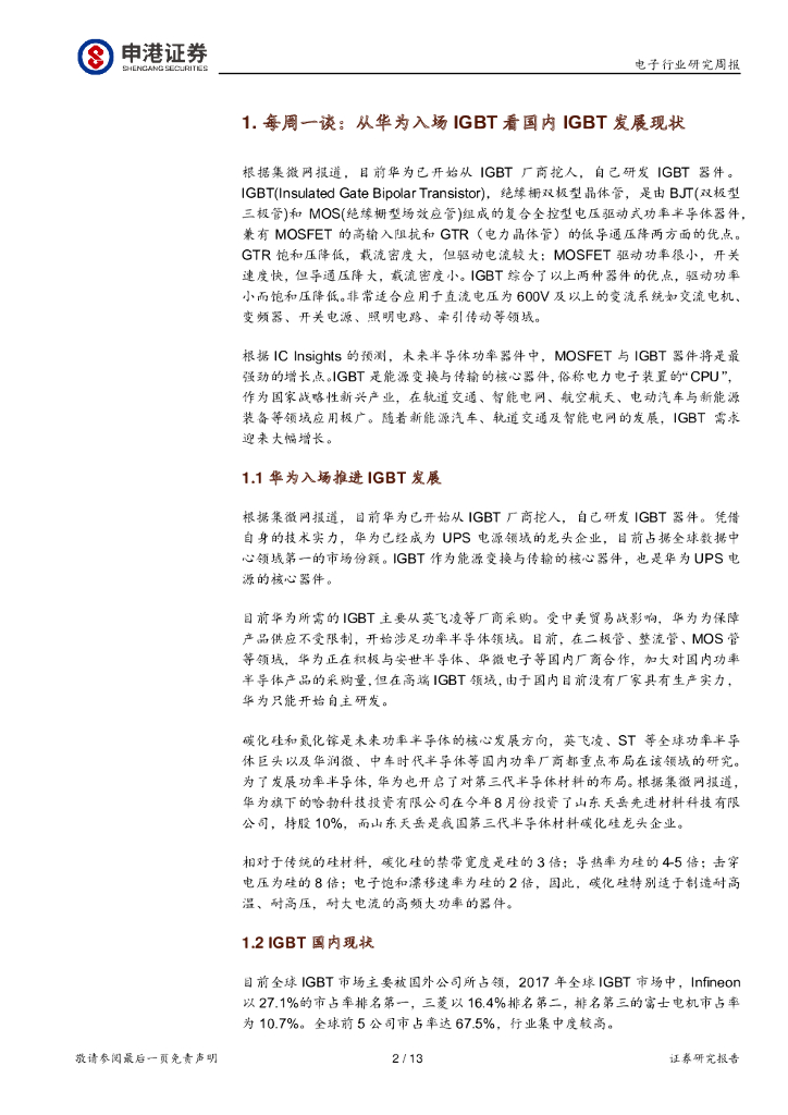 申港证券:电子行业研究周报:从华为入场IGBT看国内IGBT发展现状.pdf