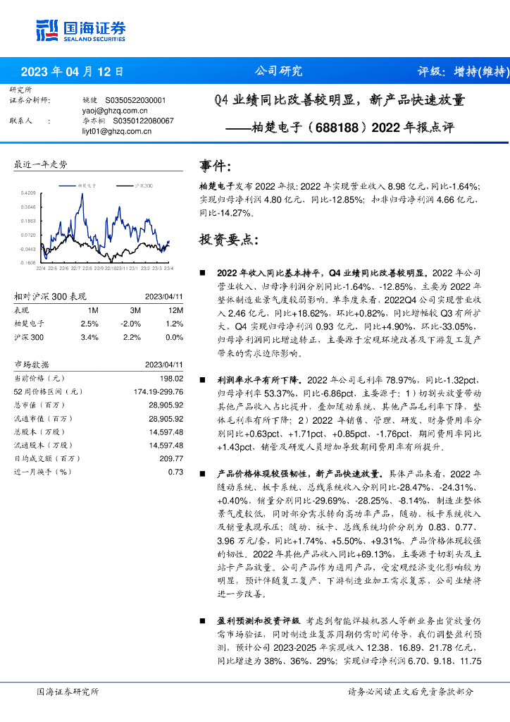 国海证券:柏楚电子(688188)-2022年报点评:Q4业绩同比改善较明显,新产品快速放量.pdf