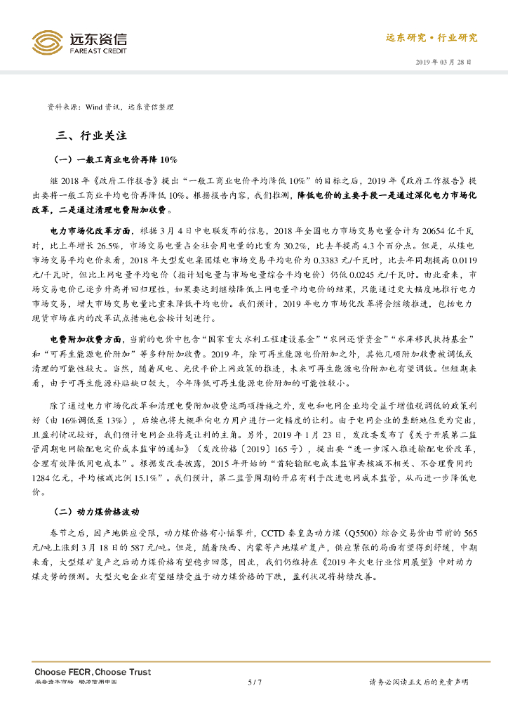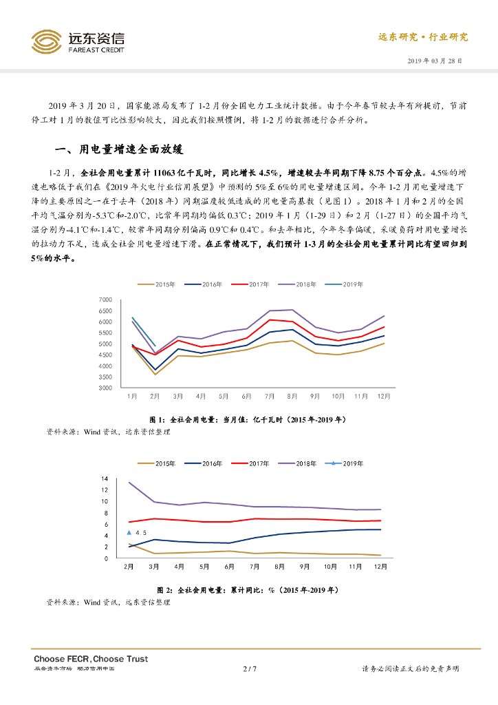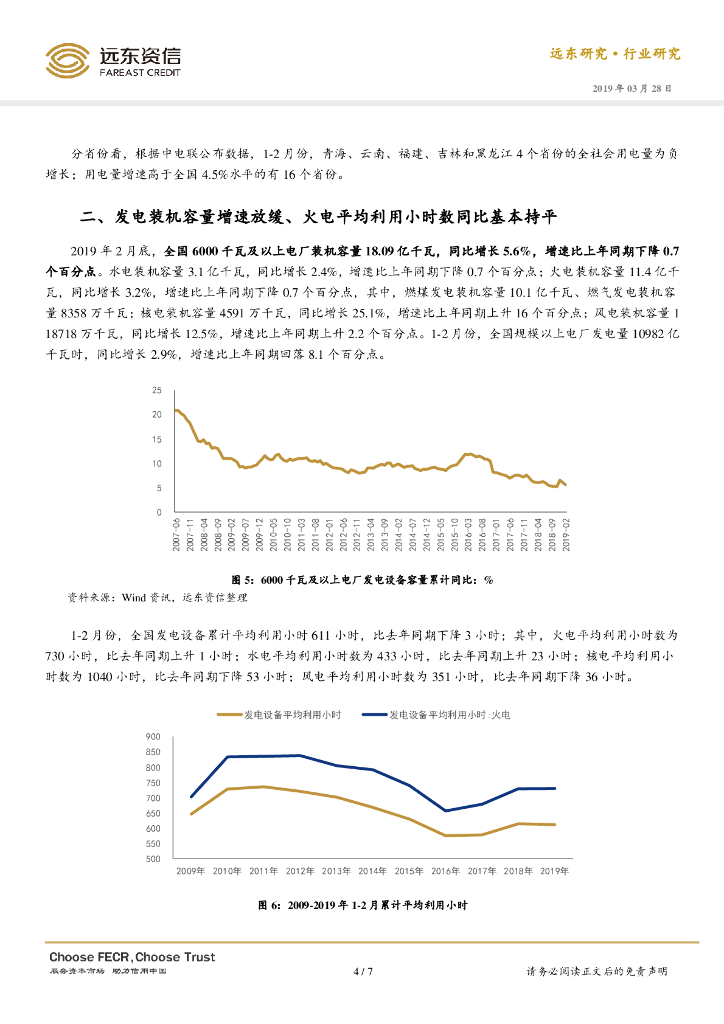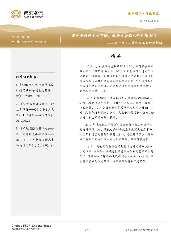 远东资信:用电量增速大幅下降,政府报告推电价再降10%——2019年1-2月电力工业数据解析报告.pdf
