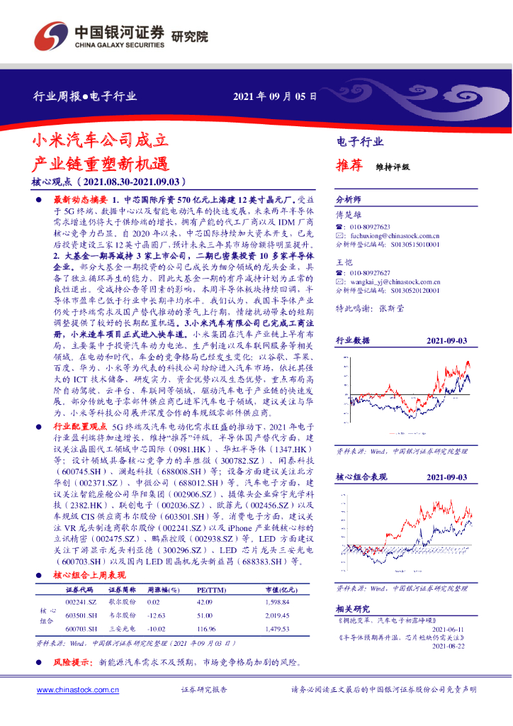 中国银河:电子行业周报;小米汽车公司成立产业链重塑新机遇.pdf