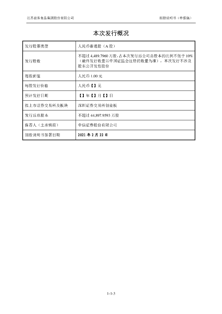 江苏益客食品集团股份有限公司深交所创业板IPO上市招股说明书.pdf
