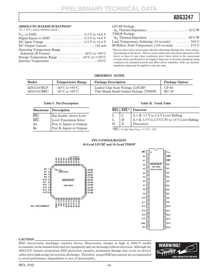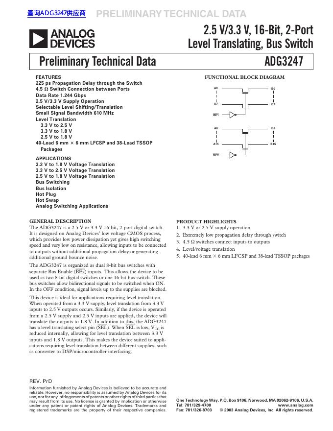 ANALOG DEVICES 2.5 V/3.3 V, 16-Bit, 2-Port Level Translating, Bus Switch ADG3247 数据手册.pdf