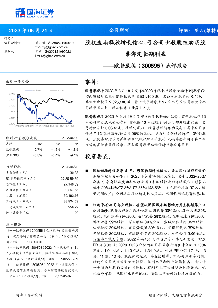 国海证券:欧普康视(300595)-点评报告:股权激励释放增长信心,子公司少数股东购买股票绑定长期利益.pdf
