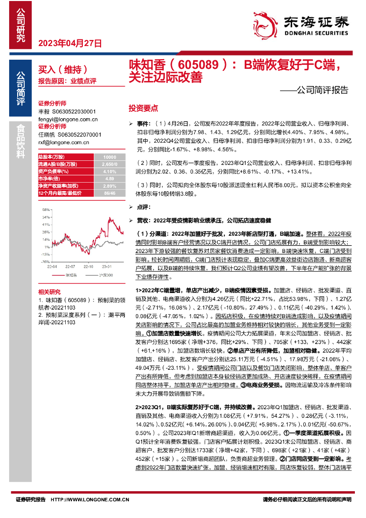 东海证券:味知香(605089)-公司简评报告:B端恢复好于C端,关注边际改善.pdf