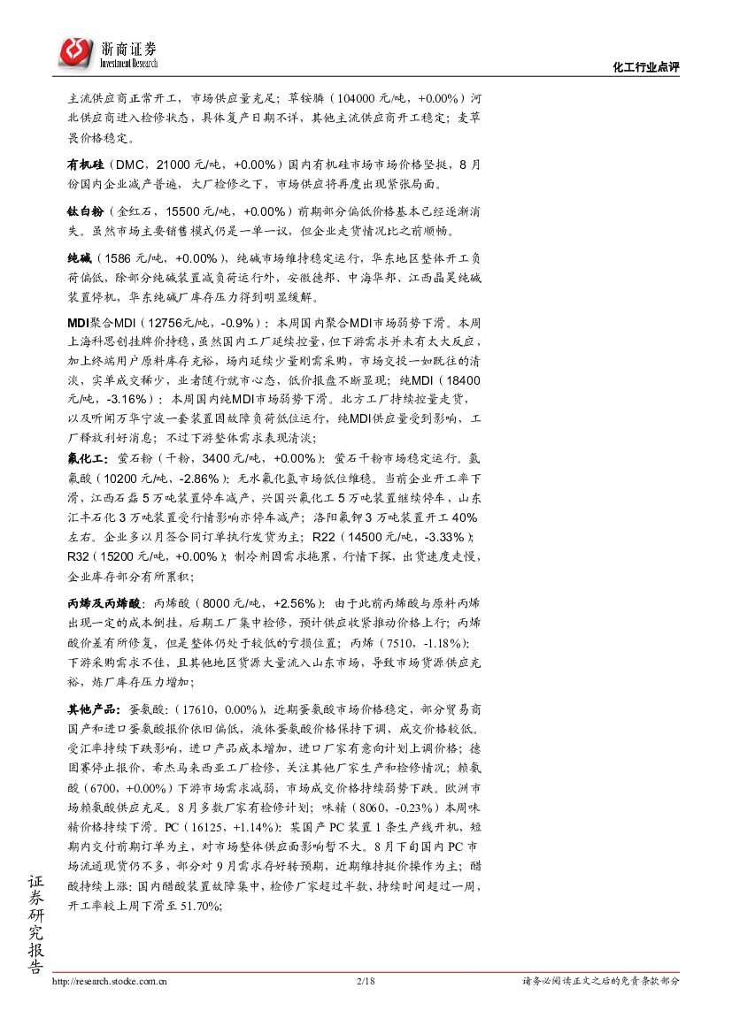 浙商证券:化工行业周报:MDI、制冷剂持续下跌;醋酸疯涨.pdf