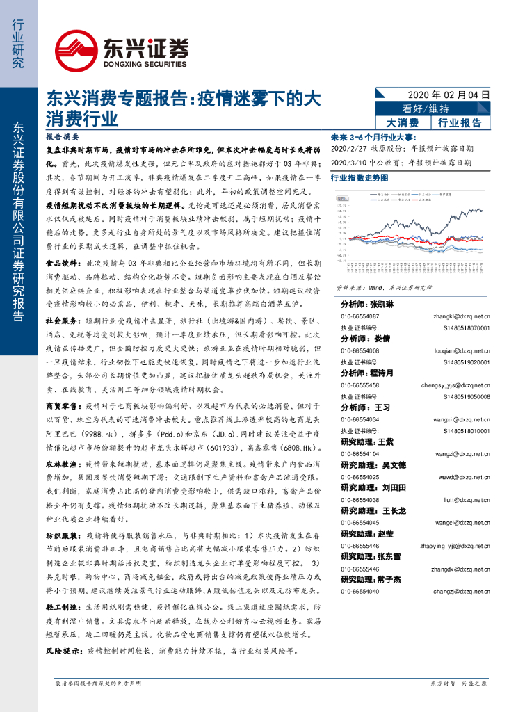 东兴证券:东兴消费专题报告:疫情迷雾下的大消费行业.pdf