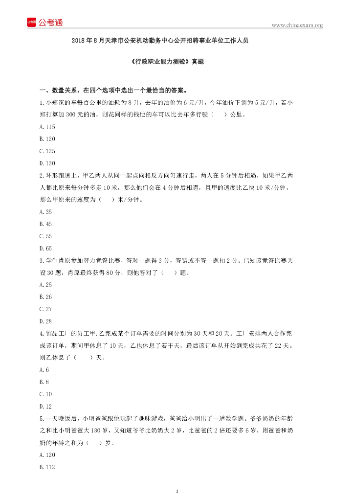 2018年8月天津市公安机动勤务中心公开招聘事业单位《行测》真题.pdf