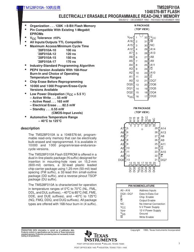 TEXAS INSTRUMENTS TMS28F010A 数据手册.pdf