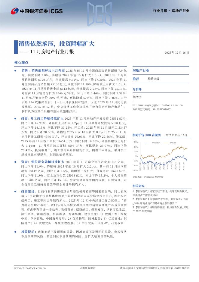 中国银河:11月房地产行业月报:销售依然承压,投资降幅扩大.pdf