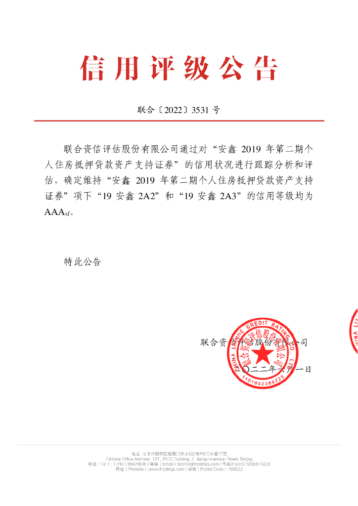 联合资信:安鑫2019年第二期个人住房抵押贷款资产支持证券2022年跟踪评级报告.pdf