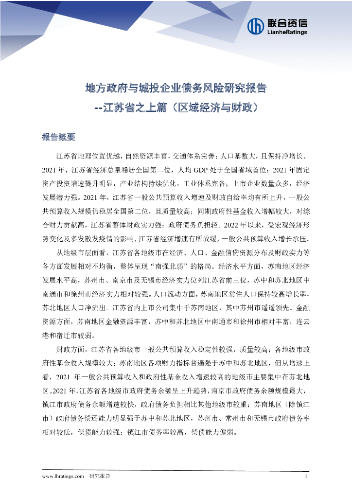 联合资信:地方政府与城投企业债务风险研究报告-江苏省上篇.pdf