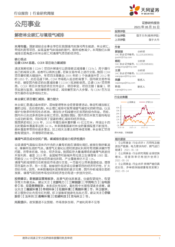 天风证券:公用事业行业研究周报:解密林业碳汇与填埋气减排.pdf