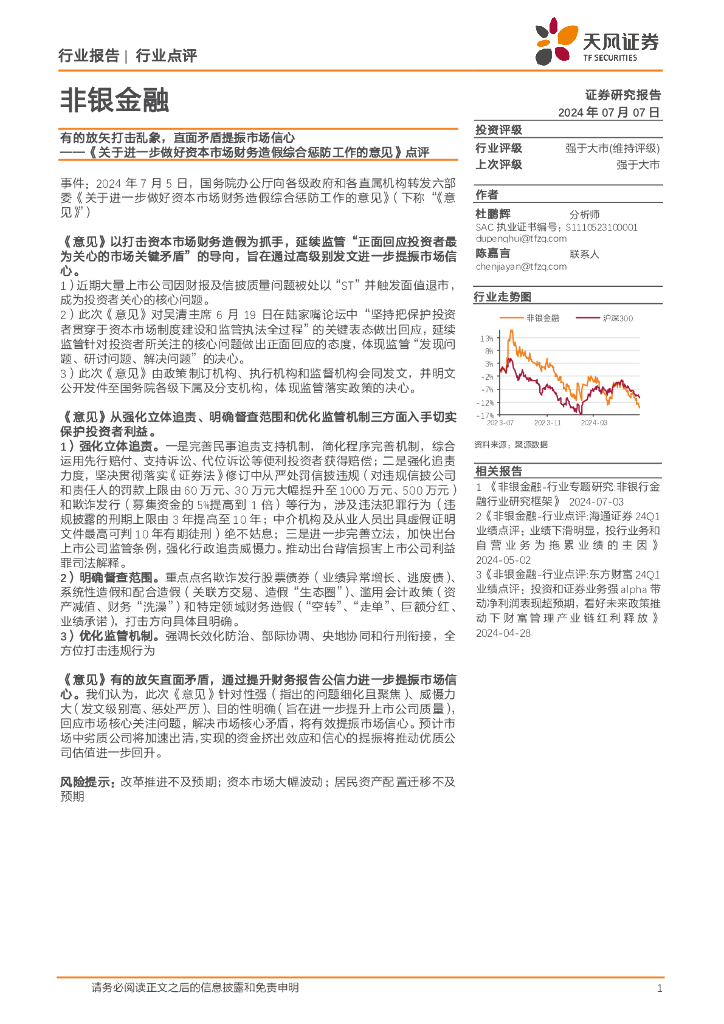 天风证券:非银金融:《关于进一步做好资本市场财务造假综合惩防工作的意见》点评-有的放矢打击乱象,直面矛盾提振市场信心.pdf