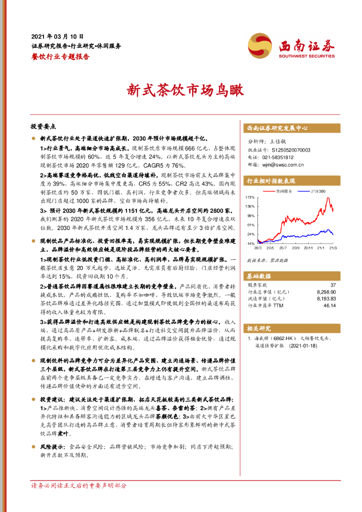 西南证券:餐饮行业专题报告:新式茶饮市场鸟瞰.pdf