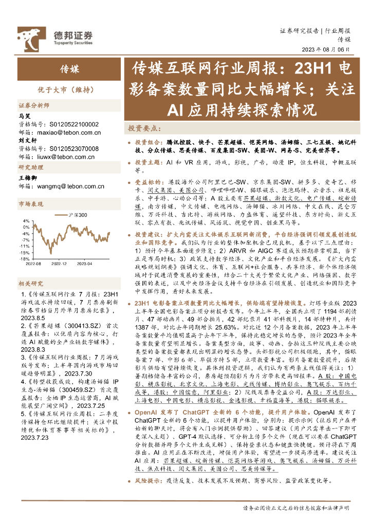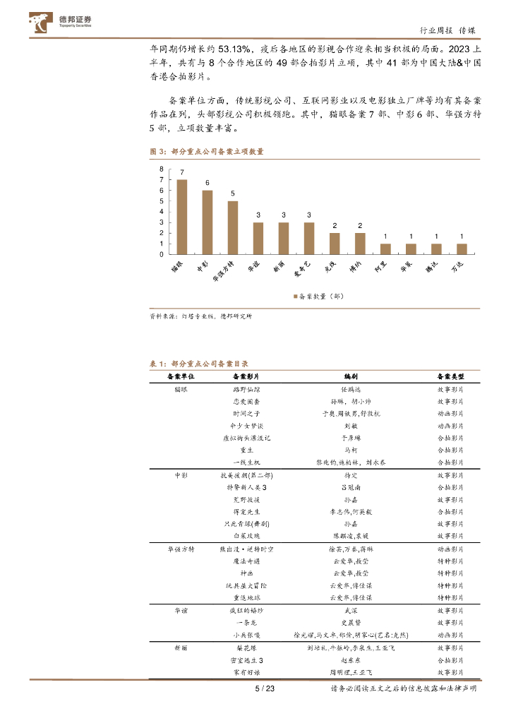 德邦证券:传媒互联网行业周报:23H1电影备案数量同比大幅增长;关注AI应用持续探索情况.pdf