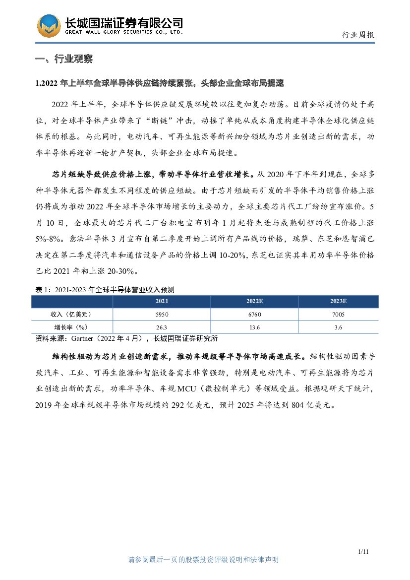 长城国瑞证券:电子行业双周报2022年第1期总第1期:全球半导体供应链持续紧张 头部企业全球布局提速.pdf